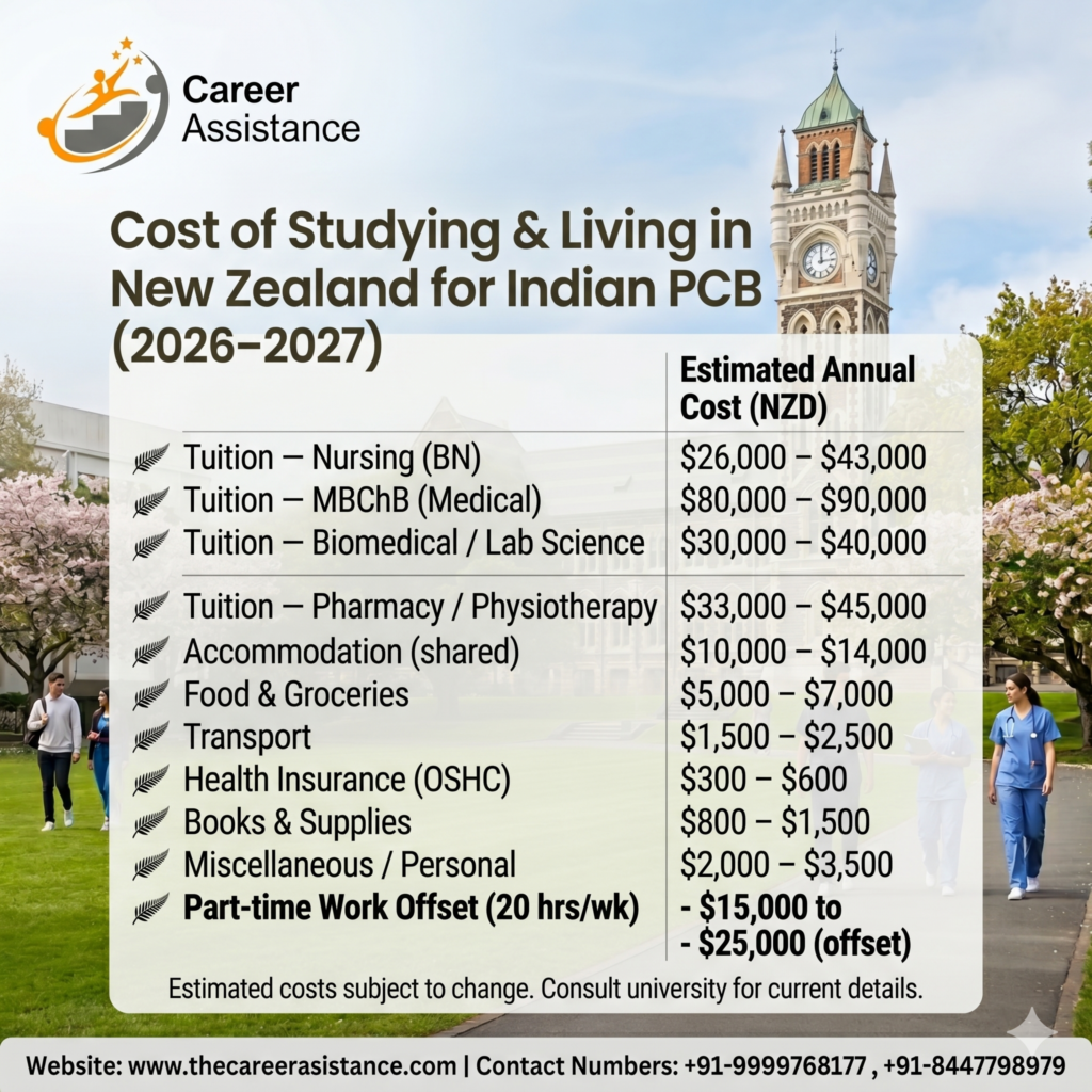 Cost of Studying & Living in New Zealand for Indian PCB Students (2026–2027)
